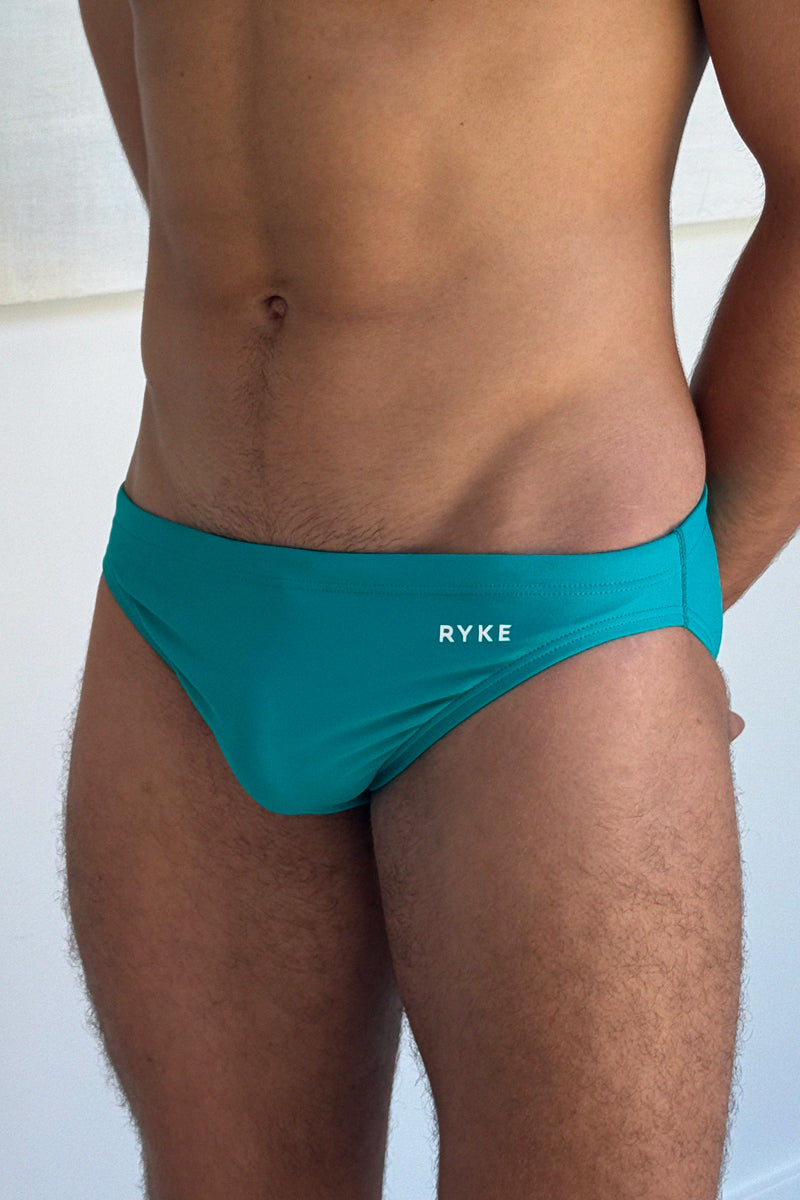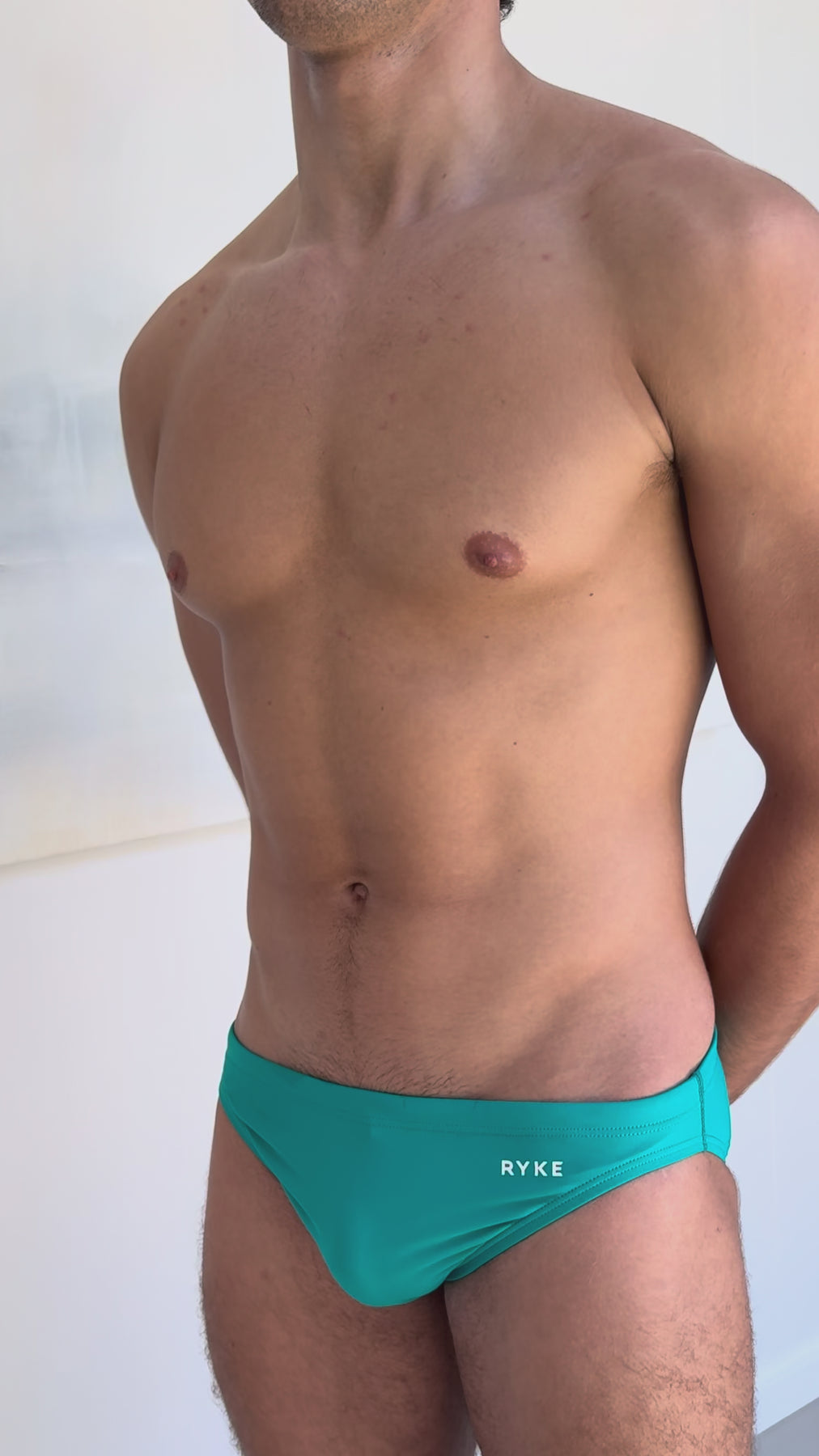 Solid amalfi green colour swim brief. Made from Recycled Nylon/Lycra fabric. Available in both the Classic and Racer Cut . The Hugo has a full front lining, flat lock seams and white draw cord.